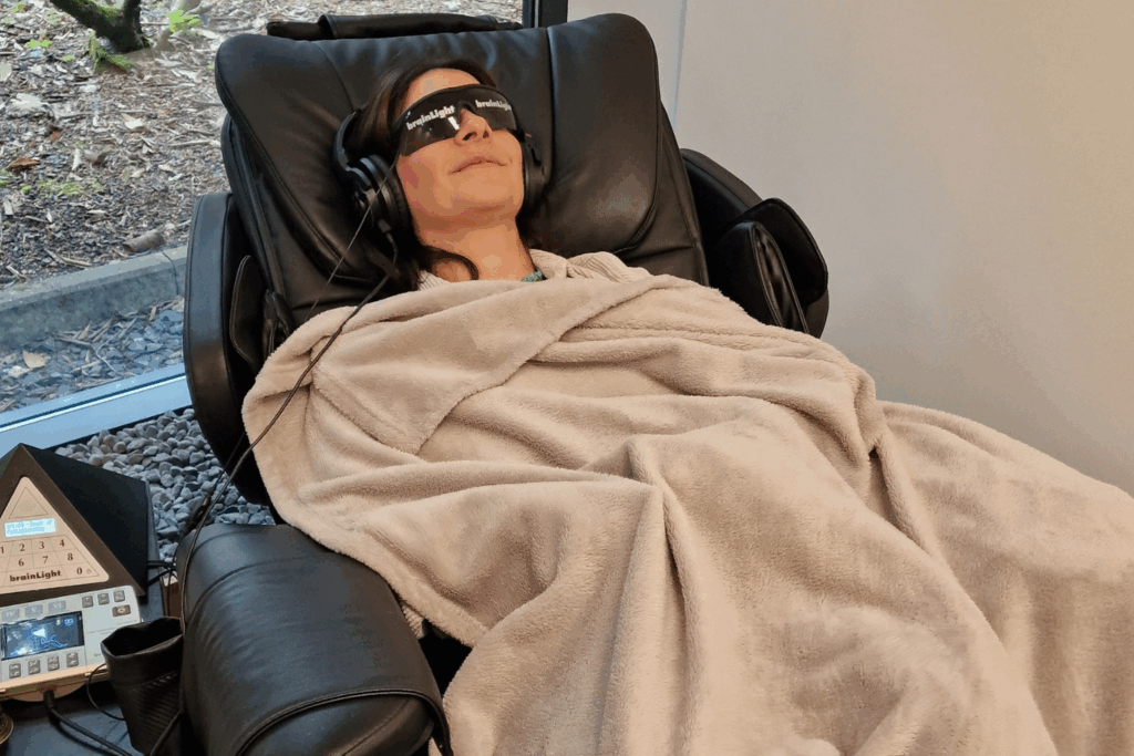 ✓ Optional Brain-Light Therapie: Massagesessel mit Synchronisierte Audio & Licht Frequenzen für ein ruhigeres Nervensystem.