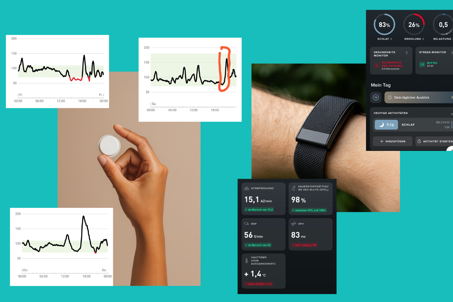 HRV, BIA, CGM & Schlaf/Energie-Signale zeigen, was wirkt; wir kalibrieren Dosis, Timing, Reihenfolge.